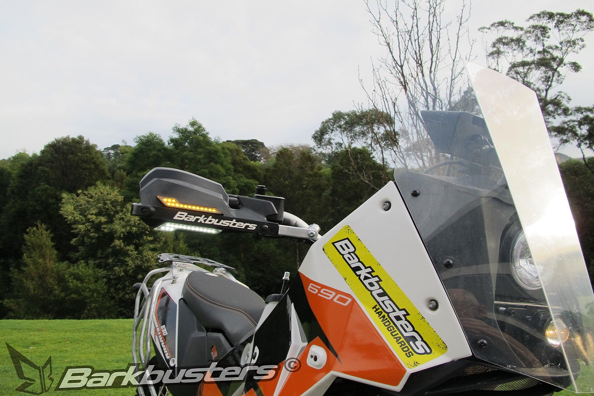 Barkbusters brings you the add-on LED Running Lights. These white LED running lights are designed to retrofit on to Barkbusters STORM, VPS & JET Handguards, adding to your safety and increasing your visibility to oncoming traffic. Each running light has 15 LEDs each, for maximum visibility. Best when used in combination with the Barkbusters LED Indicators.