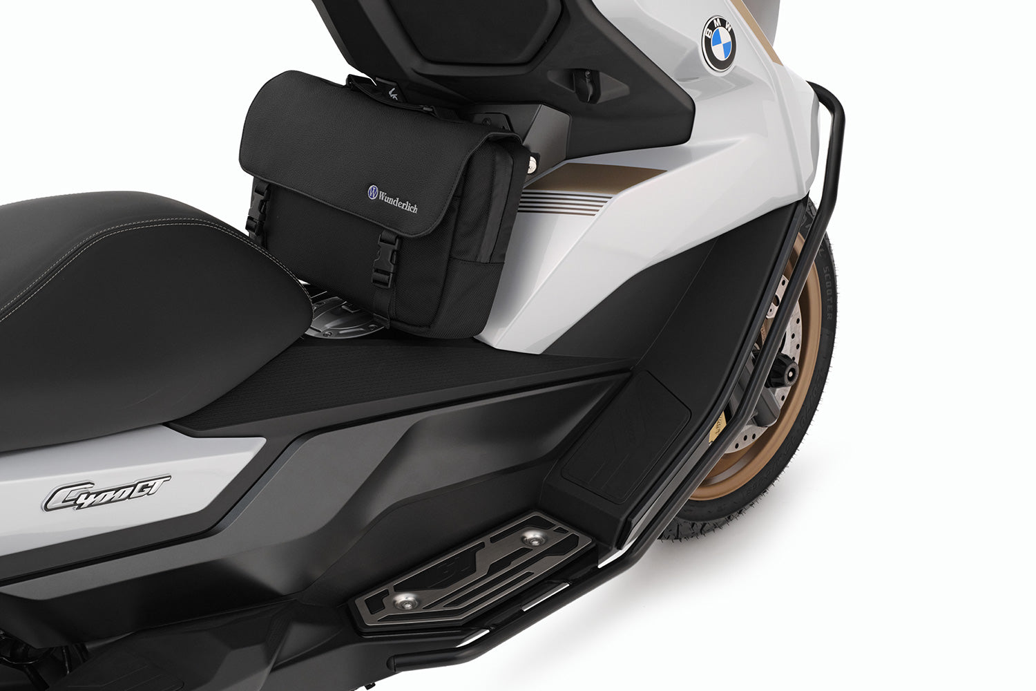 Custom-fit, perfectly integrated and smartly designed system protection bar for the BMW C 400 GT scooter. This black powder-coated protection bar doesn’t just safeguard the scooter’s fairing – we’ve extended it right down to the footboard. This offers all-round protection for the vulnerable areas of the fairing and the exposed lower side panels. For use in urban environments, where parking spaces for two-wheelers can be harsh and narrow, we’ve extended the tube structure beneath the headlight beyond the front fairing, offering added protection. The shape follows the lines of the GT model, ensuring the bar integrates subtly into the scooter’s overall design. We placed particular importance on maintaining ground clearance – for example when mounting kerbs. To that end, we use our proven 18 mm precision steel tubing. The bar is smartly mounted – without requiring any modifications such as drilling into the fairing. Installation is straightforward: the two-part system is solidly fixed on the left and right via a two-point attachment. This ensures that forces are evenly transmitted into appropriate points of the supporting frame, helping to prevent greater damage in the event of impact.