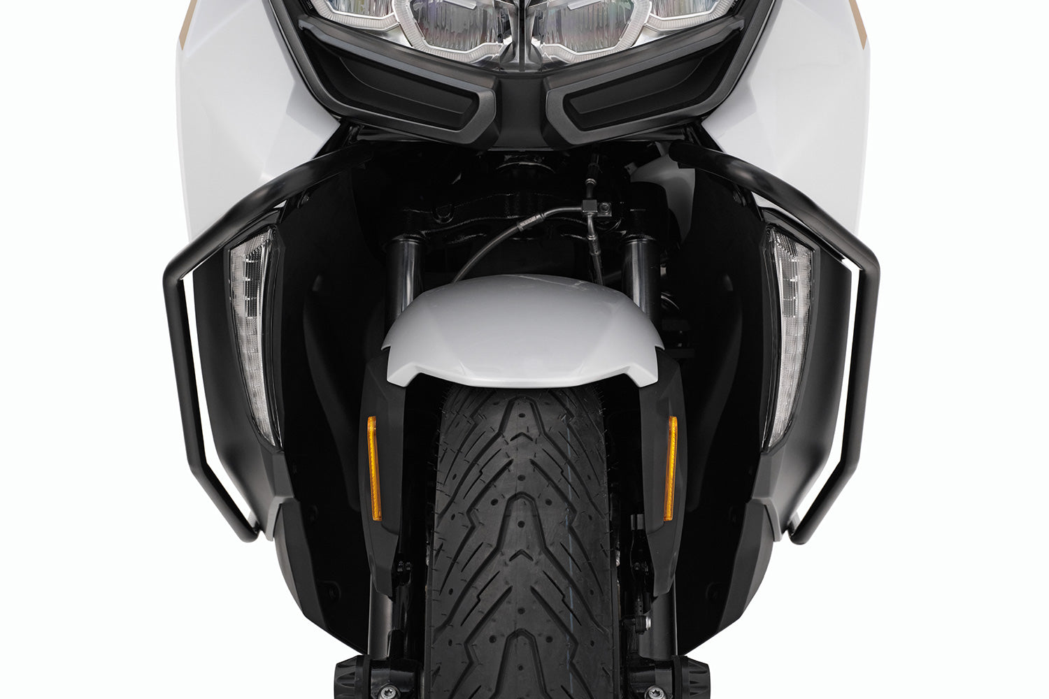 - Custom-fit, black powder-coated, perfectly integrated and well-conceived system protection bars for the BMW scooter