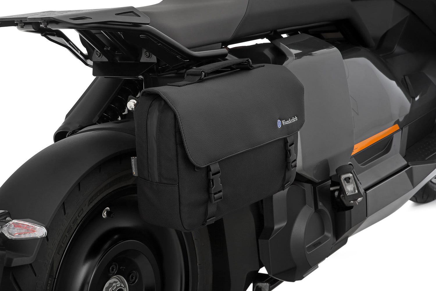 Tailor-made, perfectly integrated business bag for the BMW CE 04 scooter. We have applied our tried-and-tested and exclusive concept of secure attachment for our bags with LOXX quick-release fasteners to the scooter. The bag is securely attached with the easy-to-operate LOXX quick-release fasteners on the right behind the storage compartment on the basic bracket provided. It can be just as quickly removed. The extraordinary bag is made from water-repellent, UV-stable, fluorocarbon-impregnated Cordura® 1000 fabric. This robust material has proven itself a thousand times over in our high-quality tan bags. Includes a shoulder strap and water-repellent zips. With a main compartment and a small side pocket with zip, the bag provides plenty of space for all kinds of utensils. Functional, practical DIN A4 format, perfect for a notebook or iPad.