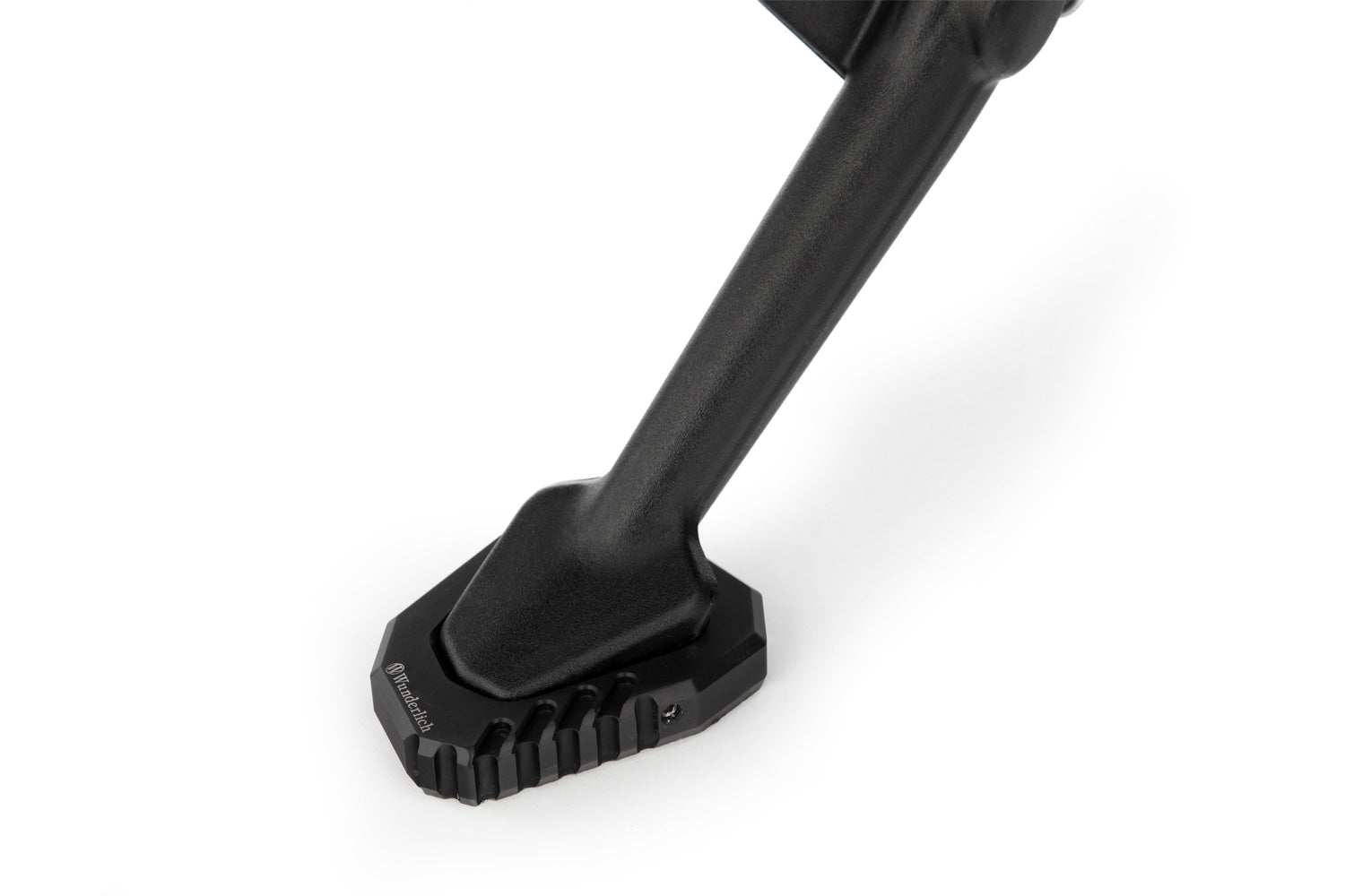 - The side stand enlarger ensures your motorcycle stands securely on any terrain – even on hot tarmac or soft ground – especially when the bike is fully loaded