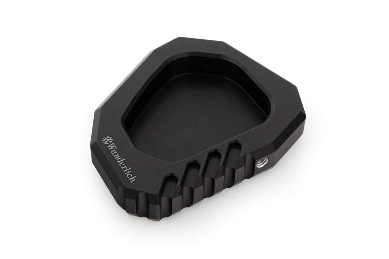 The life insurance for your BMW: Due to the small contact area of the original side stand, there is a risk of slow, often unnoticed sinking on both hot tarmac and slightly softened ground. A precisely machined enlarger, easily screwed onto the side stand, effectively eliminates this design flaw. And to ensure the side stand can be easily deployed with the heel of your boot, we have incorporated external serrations.