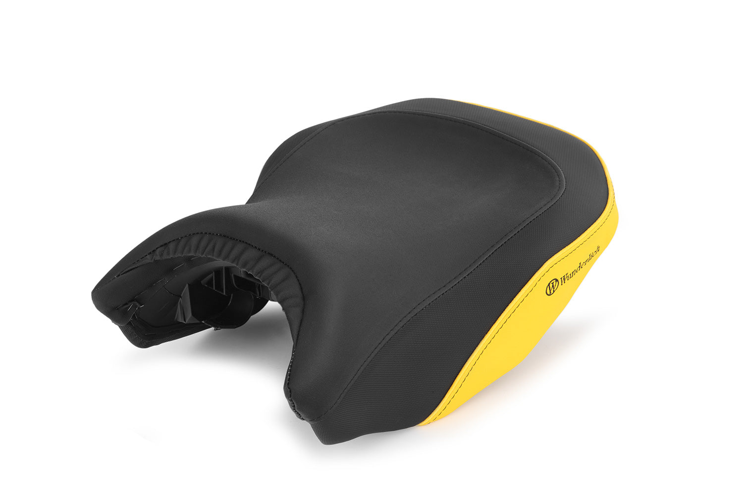 Wunderlich manufactured seats with a characteristic, ergonomic 3D contour that lets the rider become one with their BMW. The shape and angle of the carefully crafted, progressively structured, dual-layer seat core support the ergonomically beneficial, natural posture of the back. Integrated, active comfort gives a relaxing riding experience. And there's no doubt that relaxed sitting adds a serious plus to passive safety. With the ThermoPro coating, the temperature of this seat in direct sun at the peak of summer is up to 25°C lower compared to standard, untreated cover materials. Also, added up a passenger seat in the range to go with this.