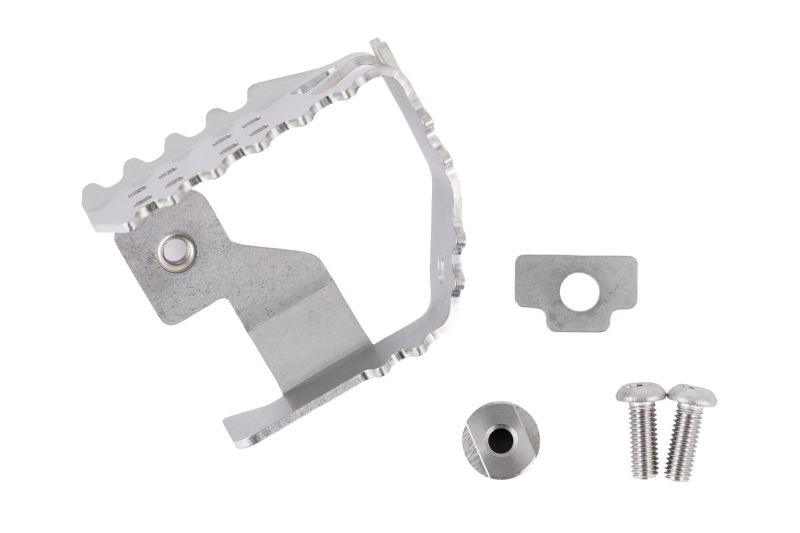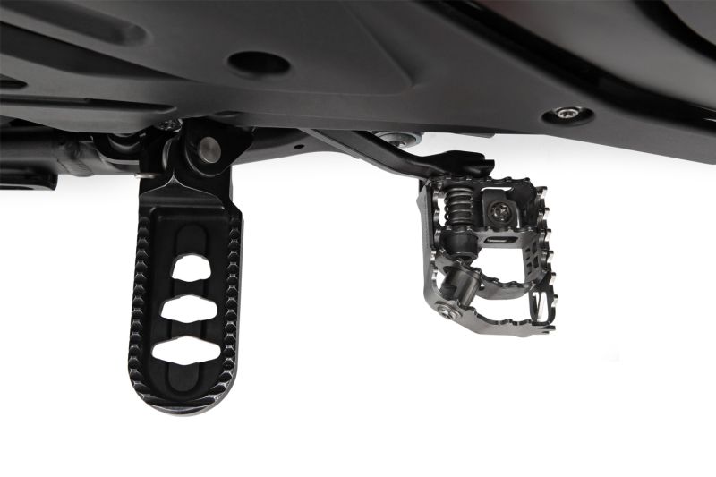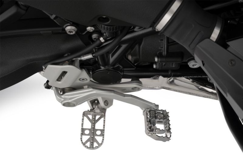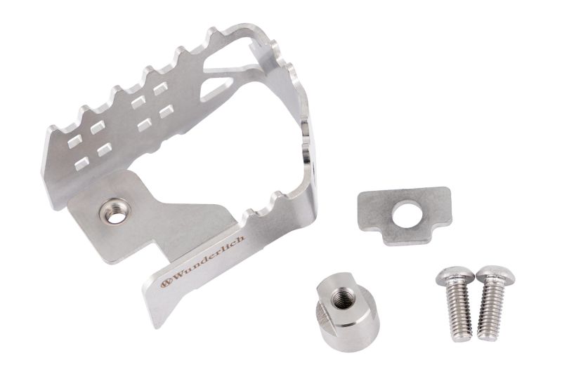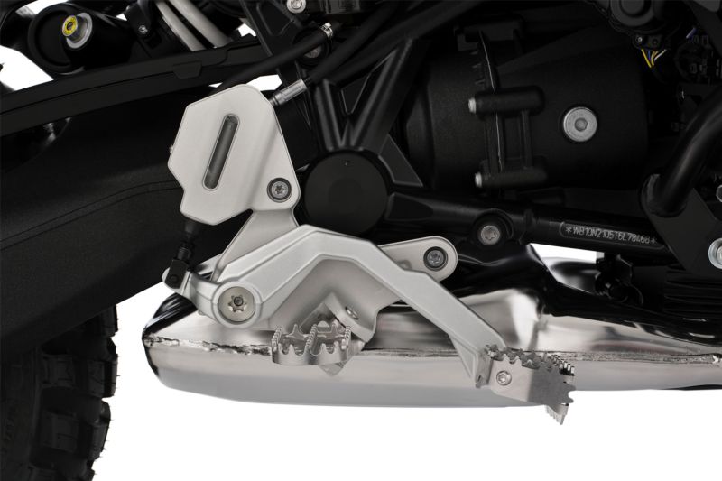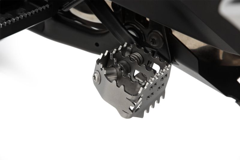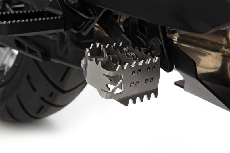 Many riders find the standard foot brake lever pedal to be too small. Searching for it repeatedly often results in inaccurate positioning, and unfortunately, slipping with the tip of the boot is almost inevitable. Slipping – or worse, the dreaded empty step – is now a thing of the past with our brake lever enlargement. Its high-quality finish makes it a visual highlight: the anti-slip, distinctive, jagged profile and the open design reinforce the adventure look and provide excellent grip – not only in wet conditions and off-road.