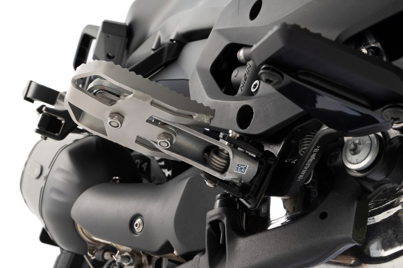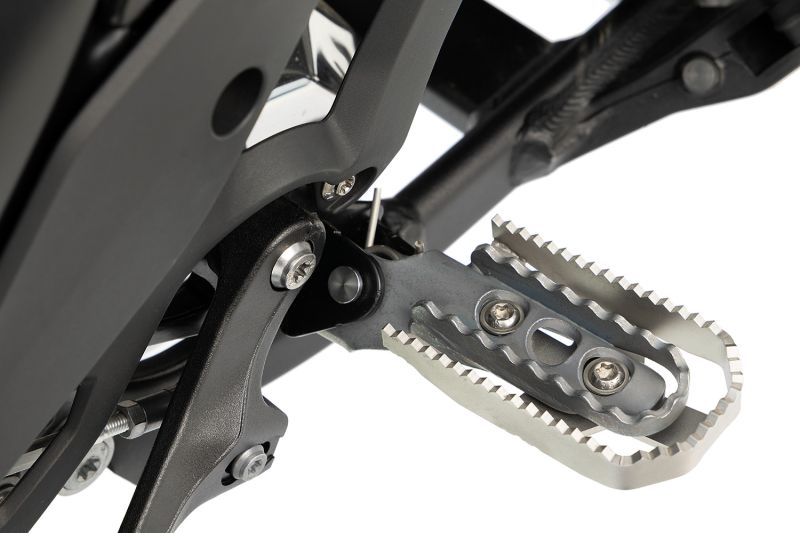 OUR ULTIMATE FOOTREST ENLARGEMENT TRANSFORMS THE STANDARD FOOTRESTS OF THE BMW R 1300 GS INTO REAL ENDURO FOOTRESTS – THEY ENLARGE THE CONTACT AREA FOR BOOTS, PROVIDING COMFORT AND SAFETY, ESPECIALLY FOR ENDURO USE. BUT ALSO OTHERWISE!