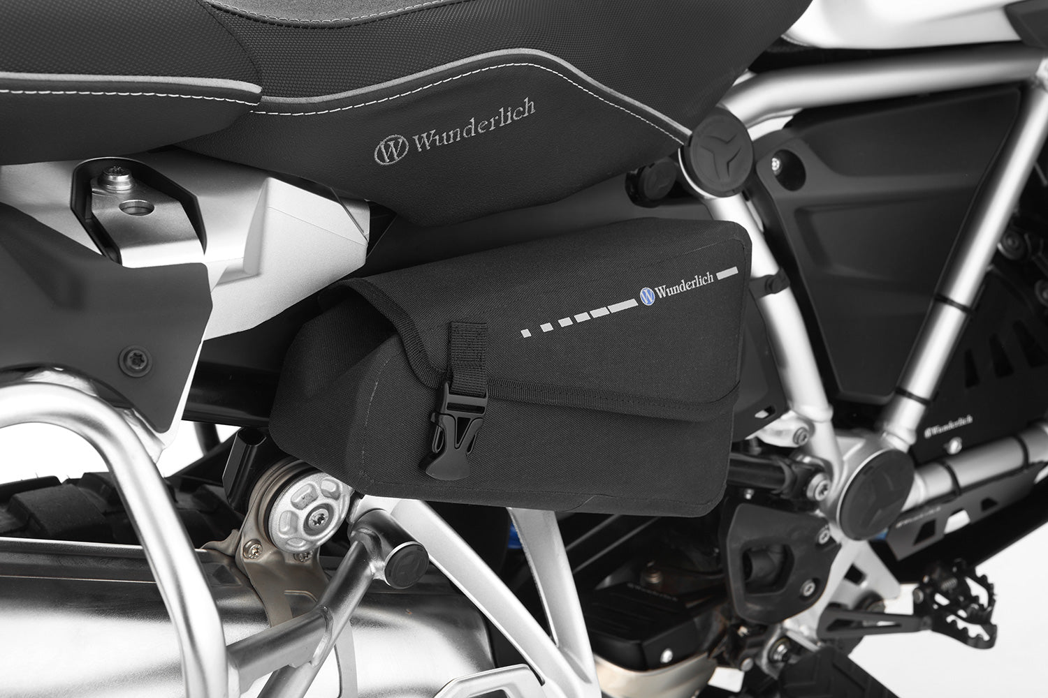These two functional DRYBAG side bags are tailored for our frame covers. They can be securely attached or removed in a flash using the LOXX quick releases on the inside. The bags consist of perfectly crafted CORDURA® 500, which is laminated on the inside with a waterproof layer of durable TPU. All seams and duplications are stitched to be waterproof. The cover flap, which also covers the waterproof and dustproof zippers and fastens with two high-quality clips, also ensures they are water-tight. They offer additional space for everything you need to hand, e.g. tools or bandages. The attachment close to the centre of gravity is particularly favourable for neutral riding behaviour. Especially in off-road use. No restriction of freedom of mobility for the rider and passenger.