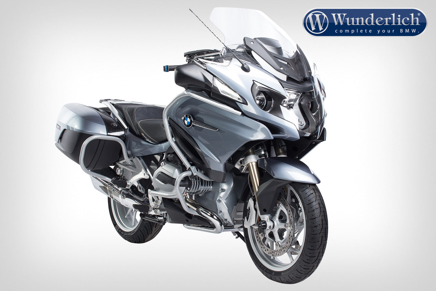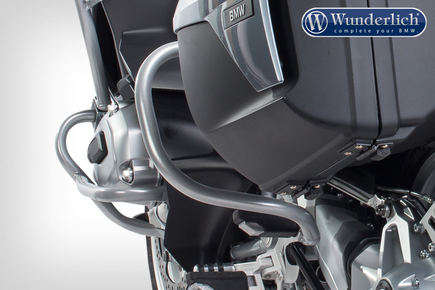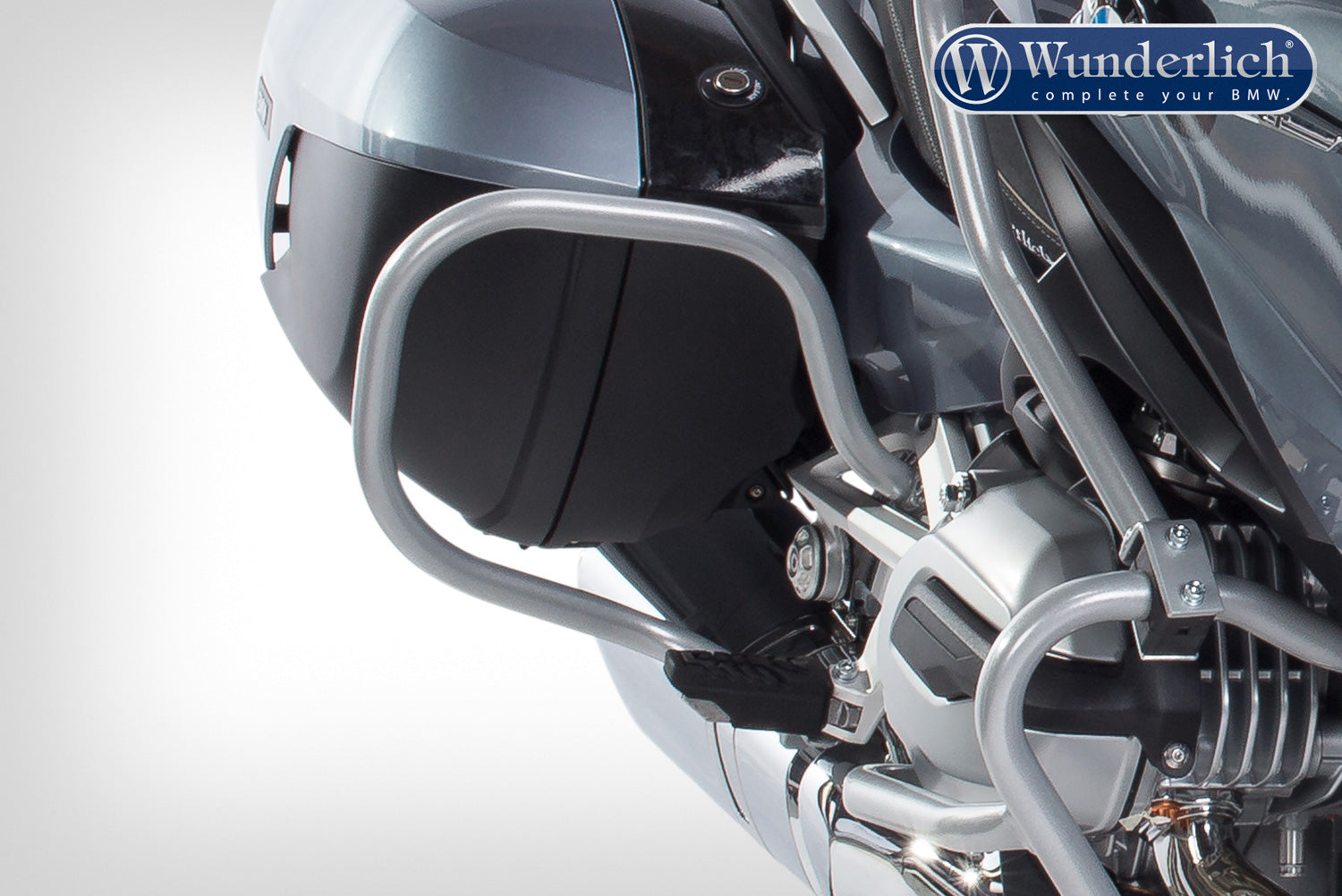 Wunderlich's rear protection bars for the R1200/1250 RT LC - it not only offers great protection for expensive, original RT LC saddlebags, but also provides a genuine visual highlight. What has long been standard equipment for authority motorcycles is now available for civilian use. Made from rigid, seamless precision tubular steel, Wunderlich engineers have collaborated with partners, Hepco Becker, to develop a crash bar that protects the side panels and bags of the RT against bumps and falls.