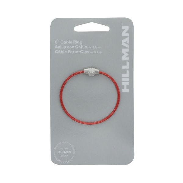 The Hillman Group Cable Ring has a twist lock, split-ring design to help you prevent losing your keys. 6 in. L, this cable is coated in nylon. This cable ring is made of metal.