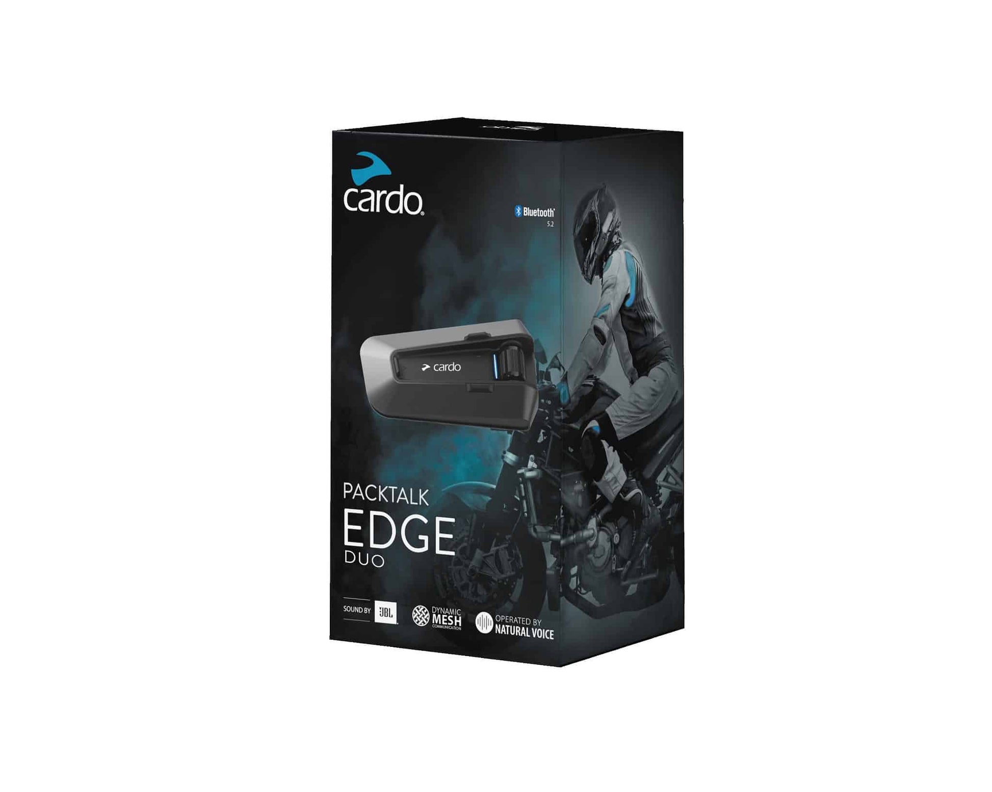 Introducing PACKTALK EDGE from Cardo Systems. It comes with a slimmer design, integrated antenna, a matt gray finish, and it keeps you more connected to the ride and those you ride with, than ever before. PACKTALK EDGE is the most advanced communication system in the world! This is the DUO version, which will allow fitment on two helmets.