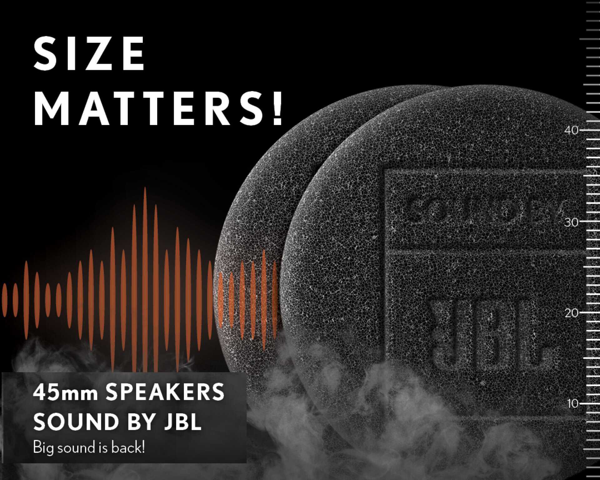 Sound by JBL – powerful 45mm JBL speakers