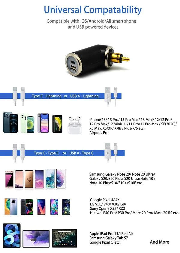 Dual, powerful, smart USB ports Both the 18W PD USB-C port and 18W Quick Charge 3.0 USB-A port, allow users to simultaneously charge multiple devices in record time, with a total maximum output of 6A/36W (Input: 12-24V), without overloading and slowing down. Perfect for Android and iOS devices!