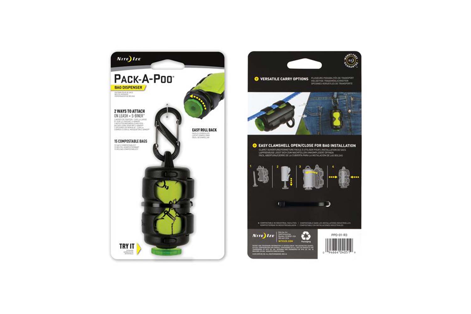 Making ease of an inglorious task, the Pack-A-Poo Bag Dispenser features a unique revolving core allowing the user to quickly roll up excess bags they have pulled out. It attaches easily to any leash or backpack with the included #2 S-Biner, or can be mounted flush simply by sliding the leash into the two integrated clips. The dispenser comes pre-loaded with 15 compostable bags, so it's friendly for Fido and for the earth. Its clamshell design makes it quick and easy to reload with standard size bag rolls.
