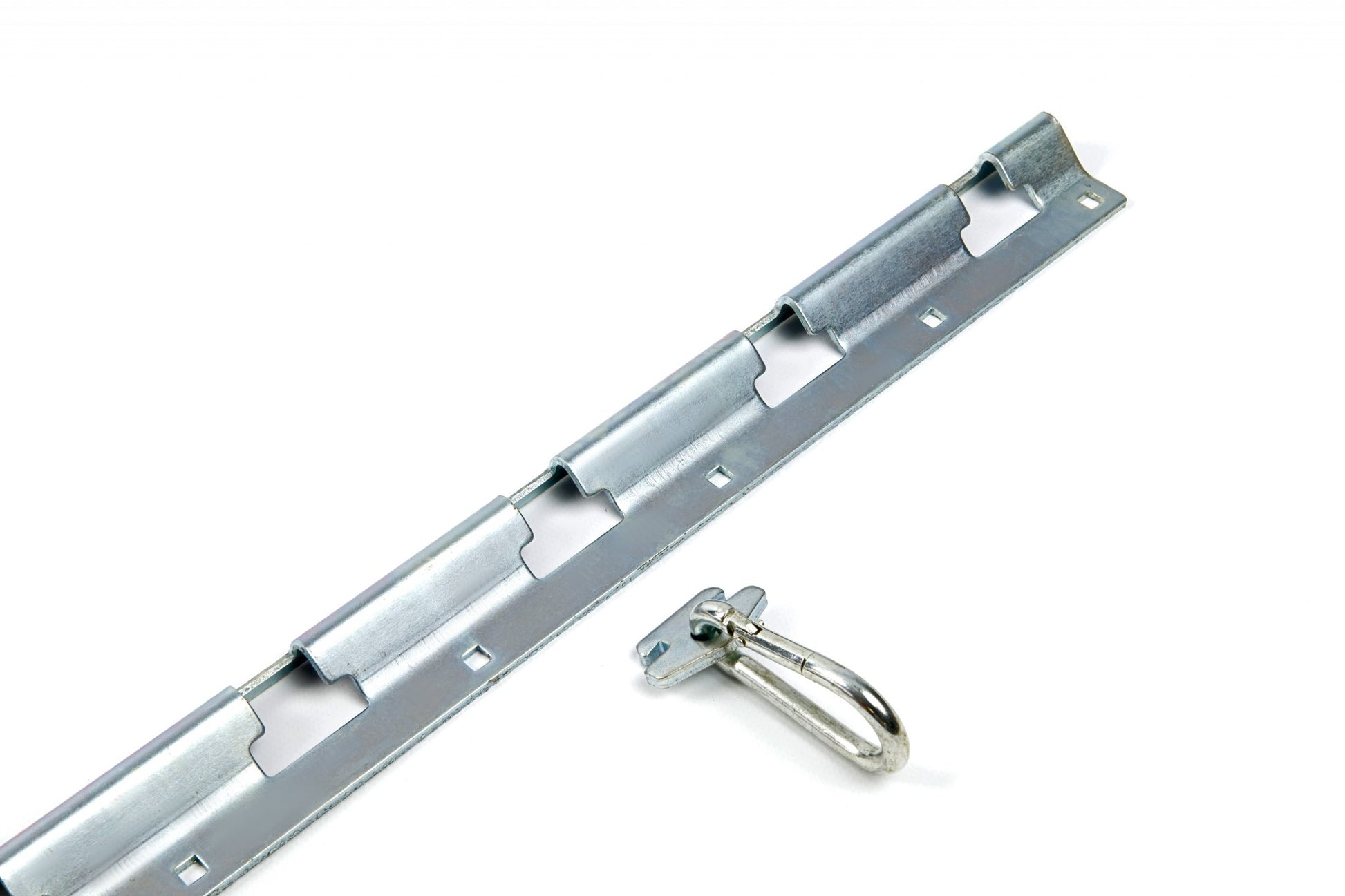 The sturdy tie-down rails, made of galvanized steel, are bolted (both on the left and right) to the floor of the trailer or van. This enables you to attach tie-down straps securely and in any position you wish. The Transport Tie-Down Rail Set comes with convenient carabiners and fittings.
