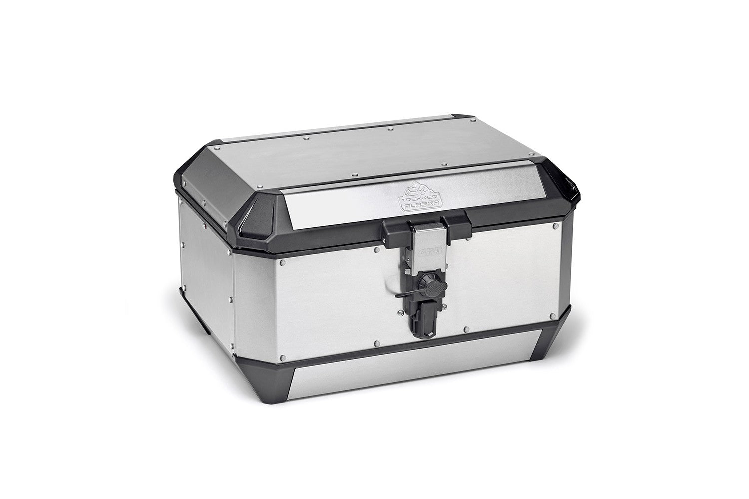 Trekker Alaska motorcycle case in natural aluminium, 56 LTR. Comfortably holds 2 modular helmets.