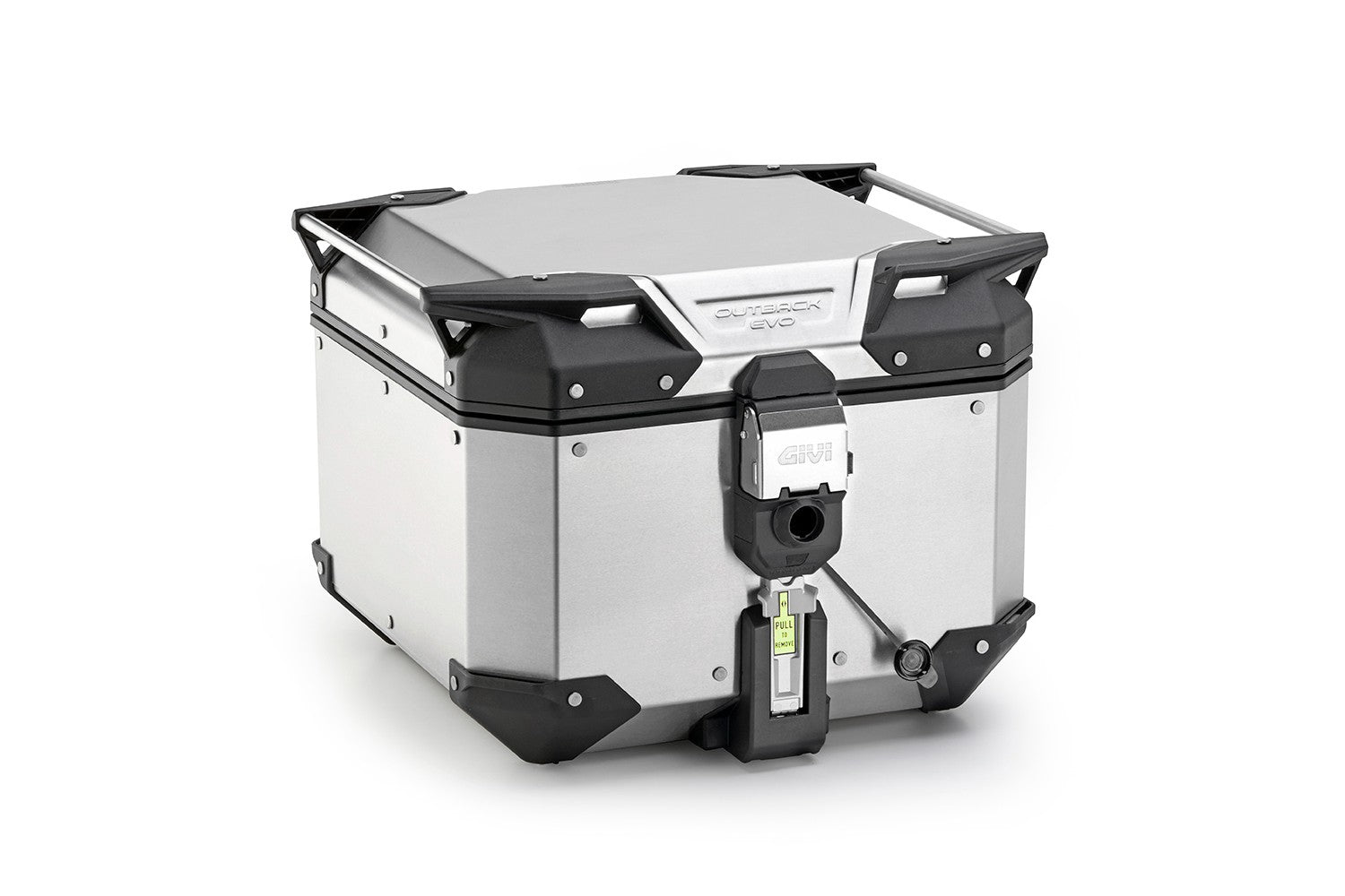 The Trekker Outback EVO SMART 42 is the new top case from the GIVI range, made entirely from aluminium and featuring the MONOKEY® system for safe, easy attachment. The Security Lock mechanism guarantees maximum security for your top case, while the new corners eliminate the need for strap loops and make attachment to the tubular handles more secure.