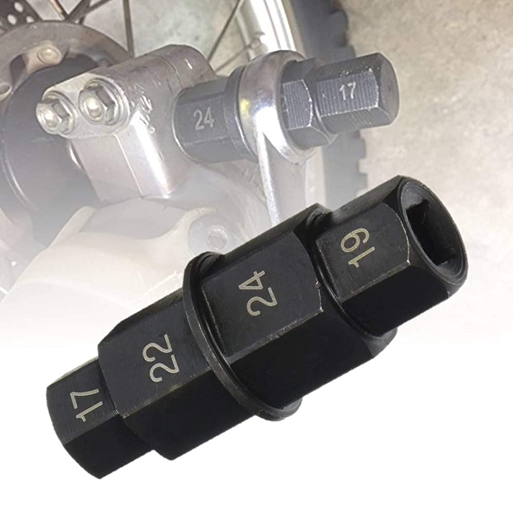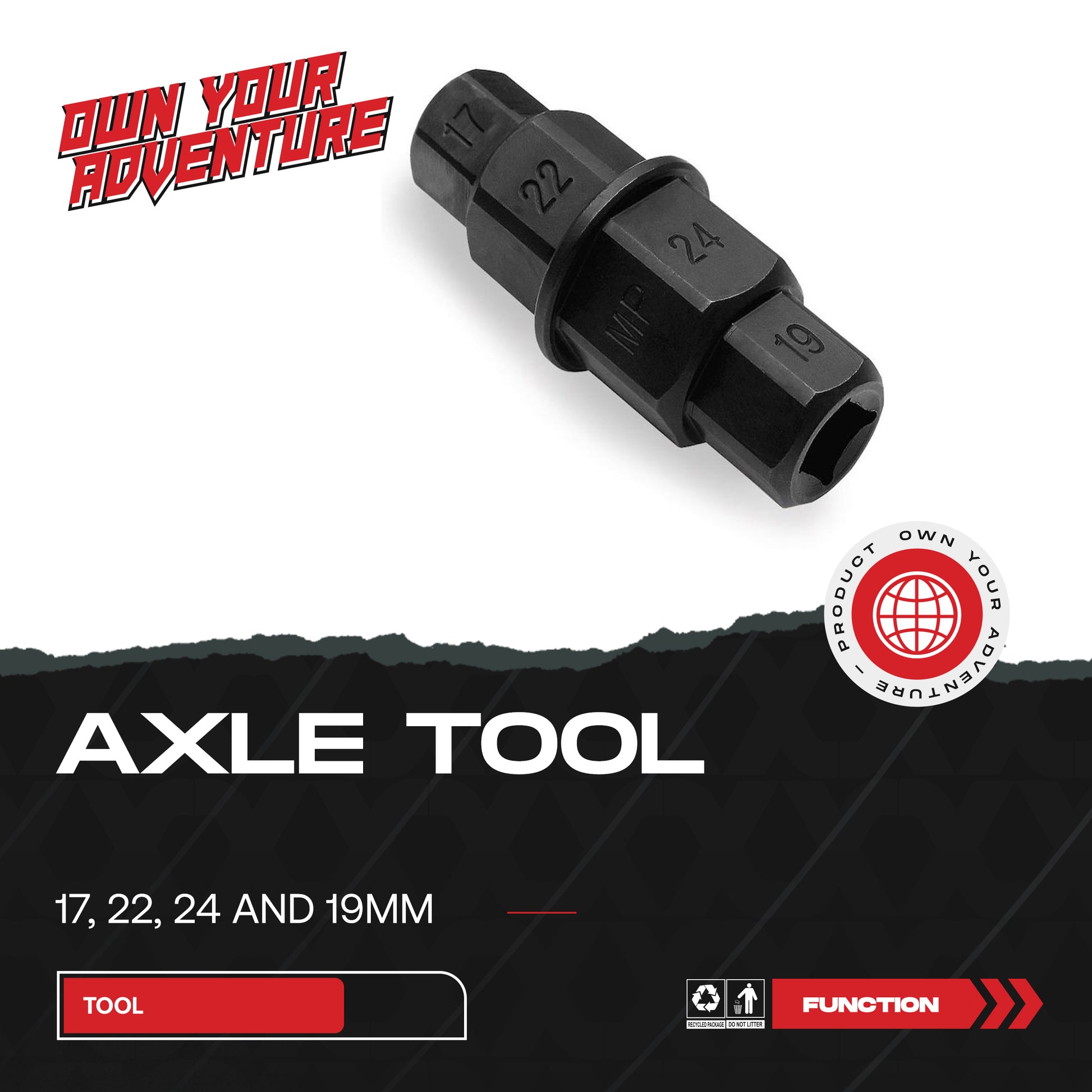 Designed for easy installation removal adjustment of front tire axles on sport or dirt bikes with hexagonal axle holes.