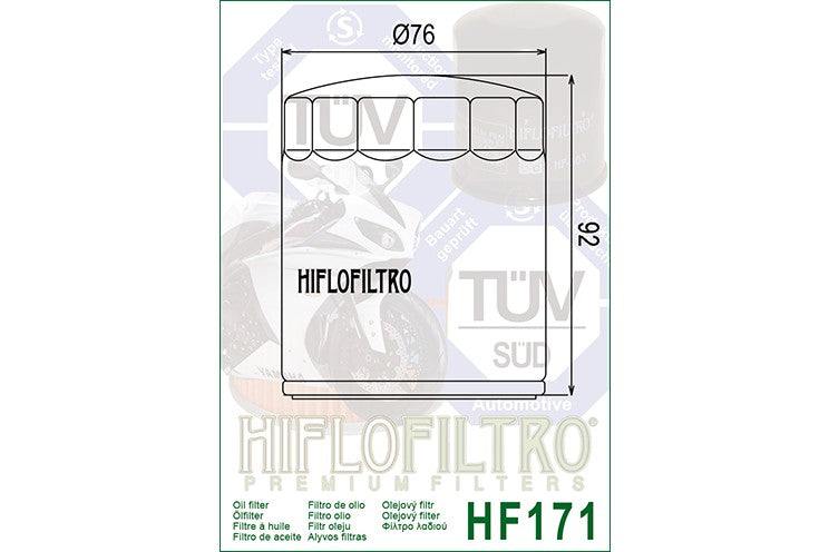 - HiFloFiltro Oil Filter, product approved and production monitored - the only motorcycle oil filters in the world to carry the stringent TUV and ISO certifications
