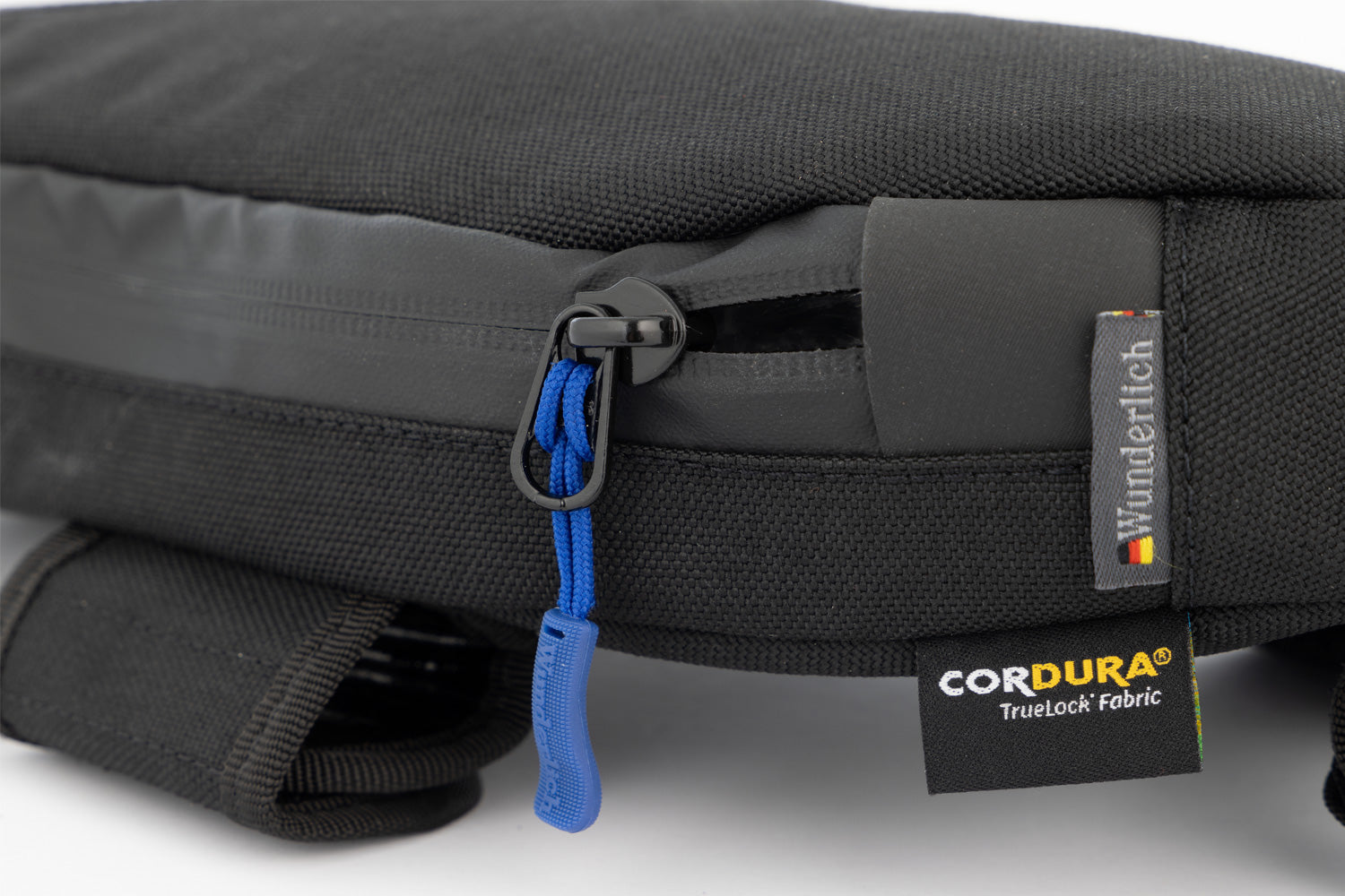 The positioning ensures optimised weight distribution. We use water-deflecting, Teflon-coated, dirt-repellent Cordura 1000 fabric that doesn't bleach and has thoroughly proven to be highly durable and non-abrasive. Lined external surfaces simultaneously provide dual protection: they protect the contents from vibrations and the bar from chafing. The compact form, the cut and the high-quality fabric prevent the bags, which retain a stable shape even when empty, from buckling and fluttering. The handy branded zippers from YKK are water and dust-proof. Typically Wunderlich: the blue inner lining makes everything easy to see.