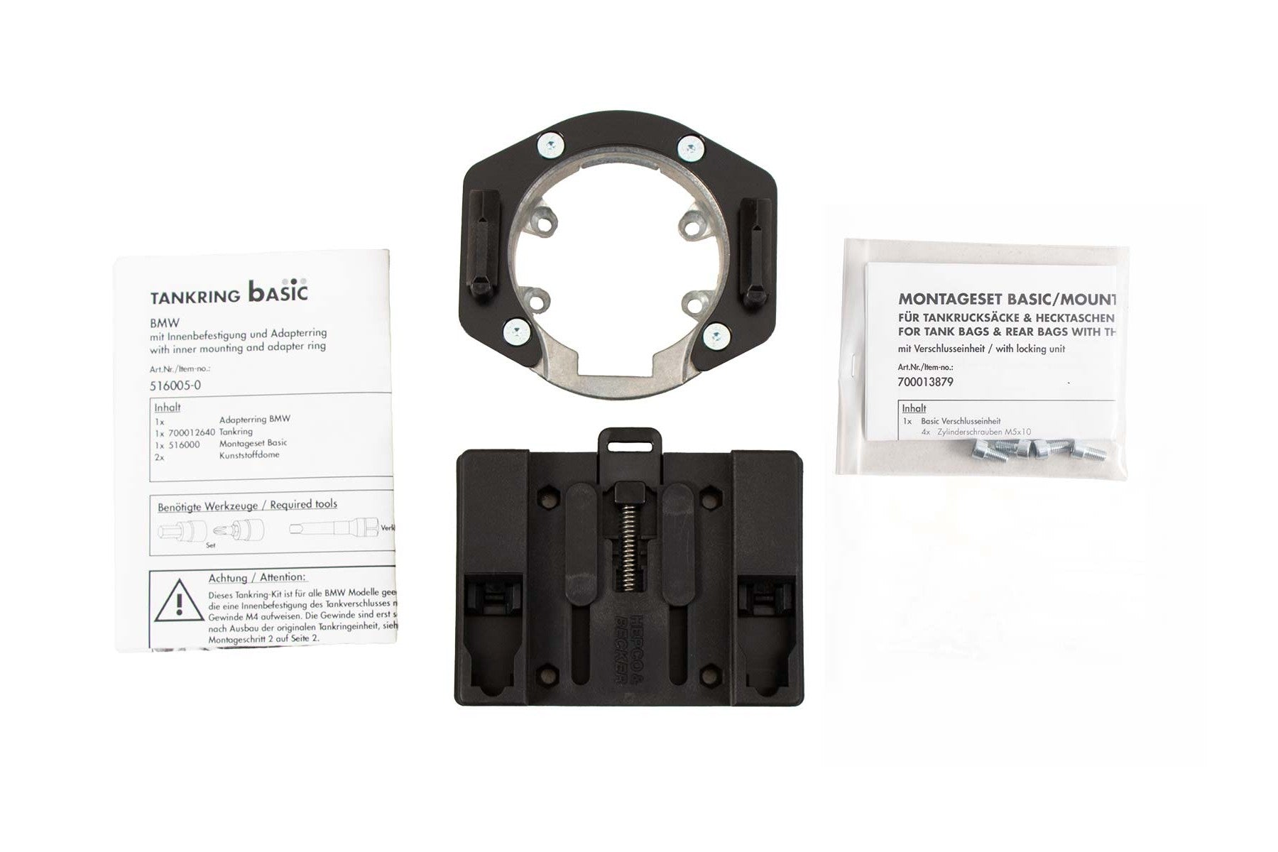 The HEPCO BECKER tank ring for fastening tank bags is used for attaching tank bags to the motorcycle.