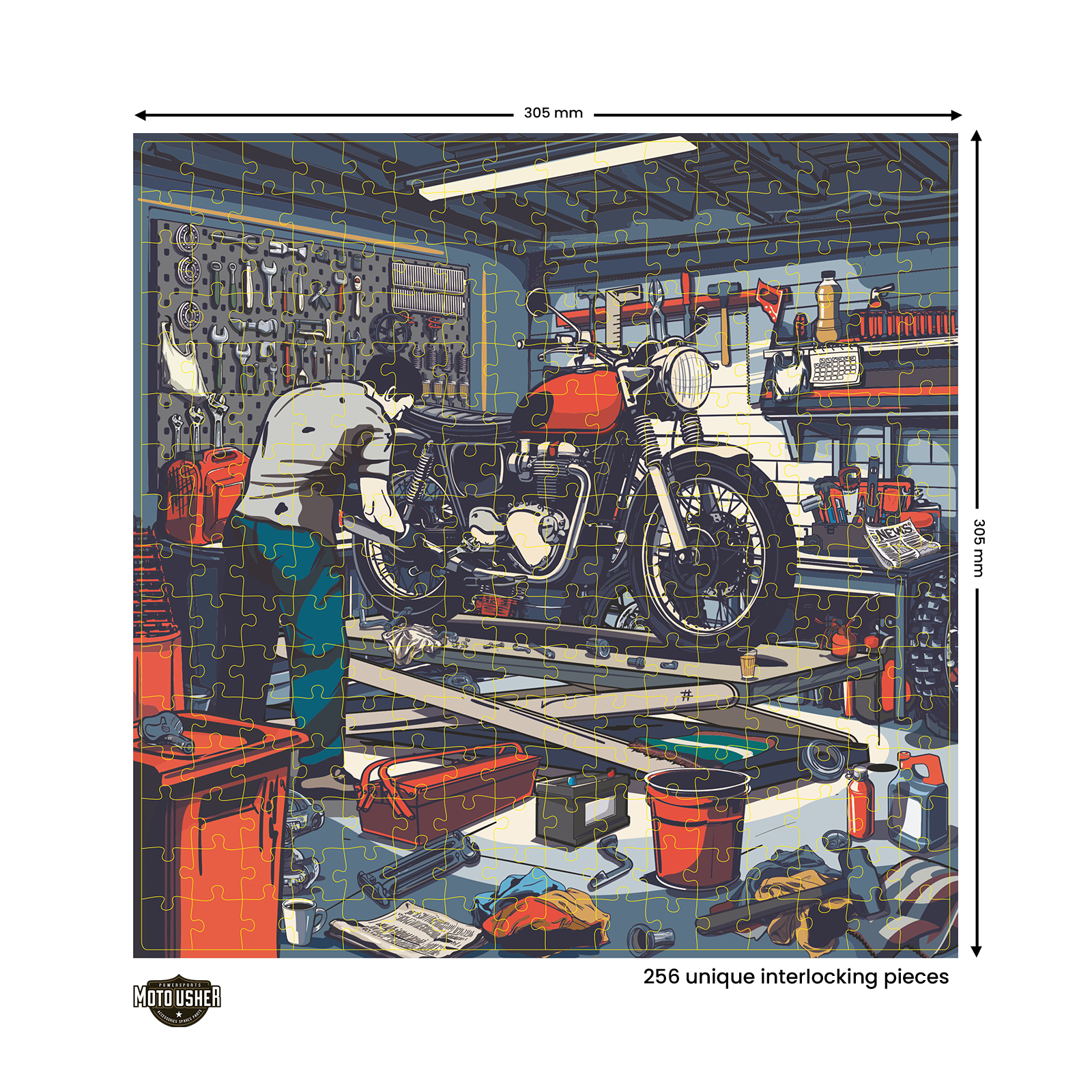 The Wrench Riddle is an original illustration brought to life as a high-quality wooden jigsaw, designed especially for those who find beauty in bolts and brilliance in bikes. With its vintage vibe and intricate details, it’s a visual treat for any motorhead.