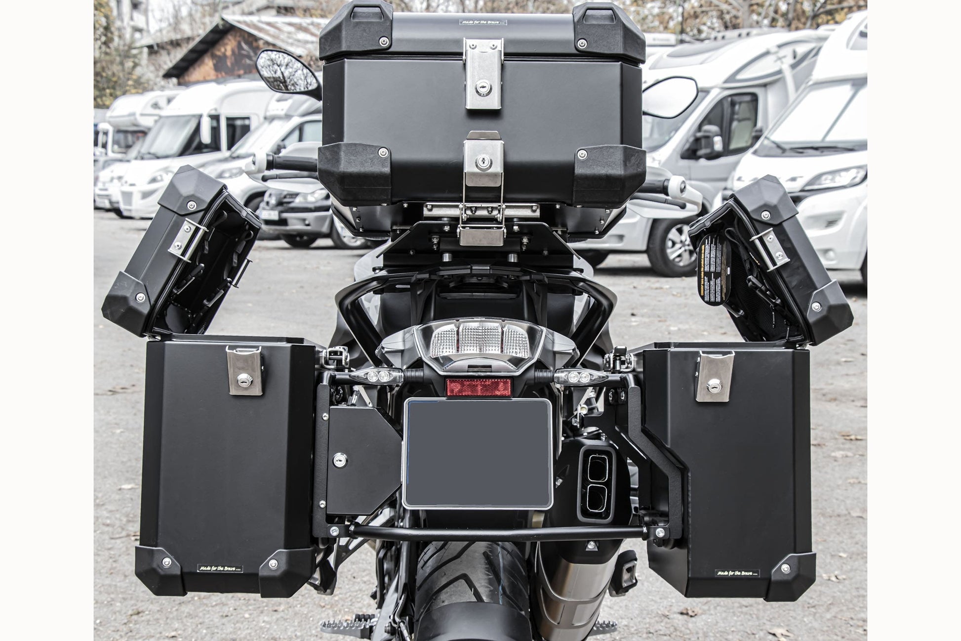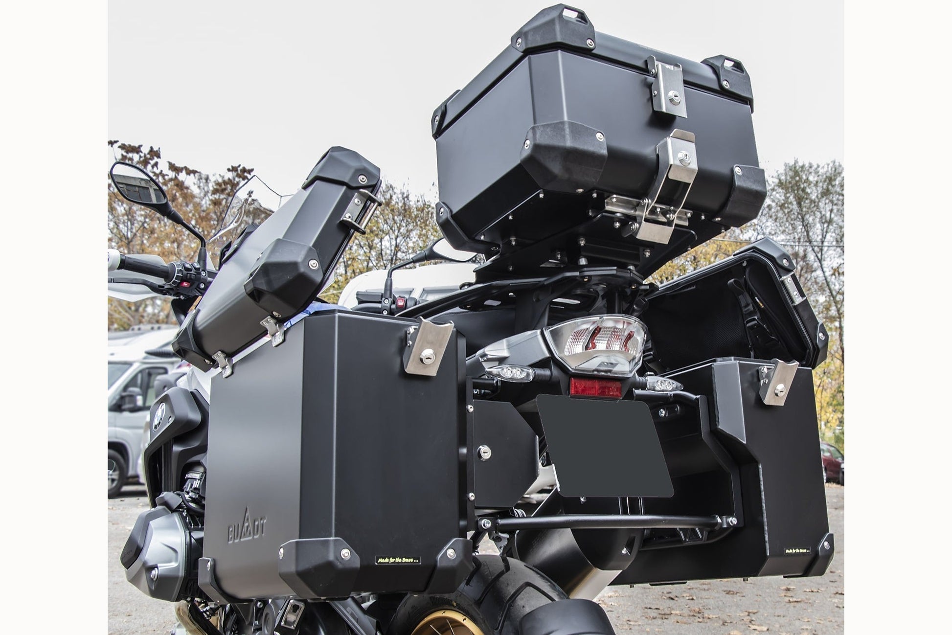 Includes BUMOT's new bespoke latches in stainless steel, a reinforced case floor in the points of attachment, that provides a 4mm mounting surface for increased strength, and lower profile lid strap brackets in high strength polyamide nylon for increased pillion comfort and less likelihood of injury in an "off".