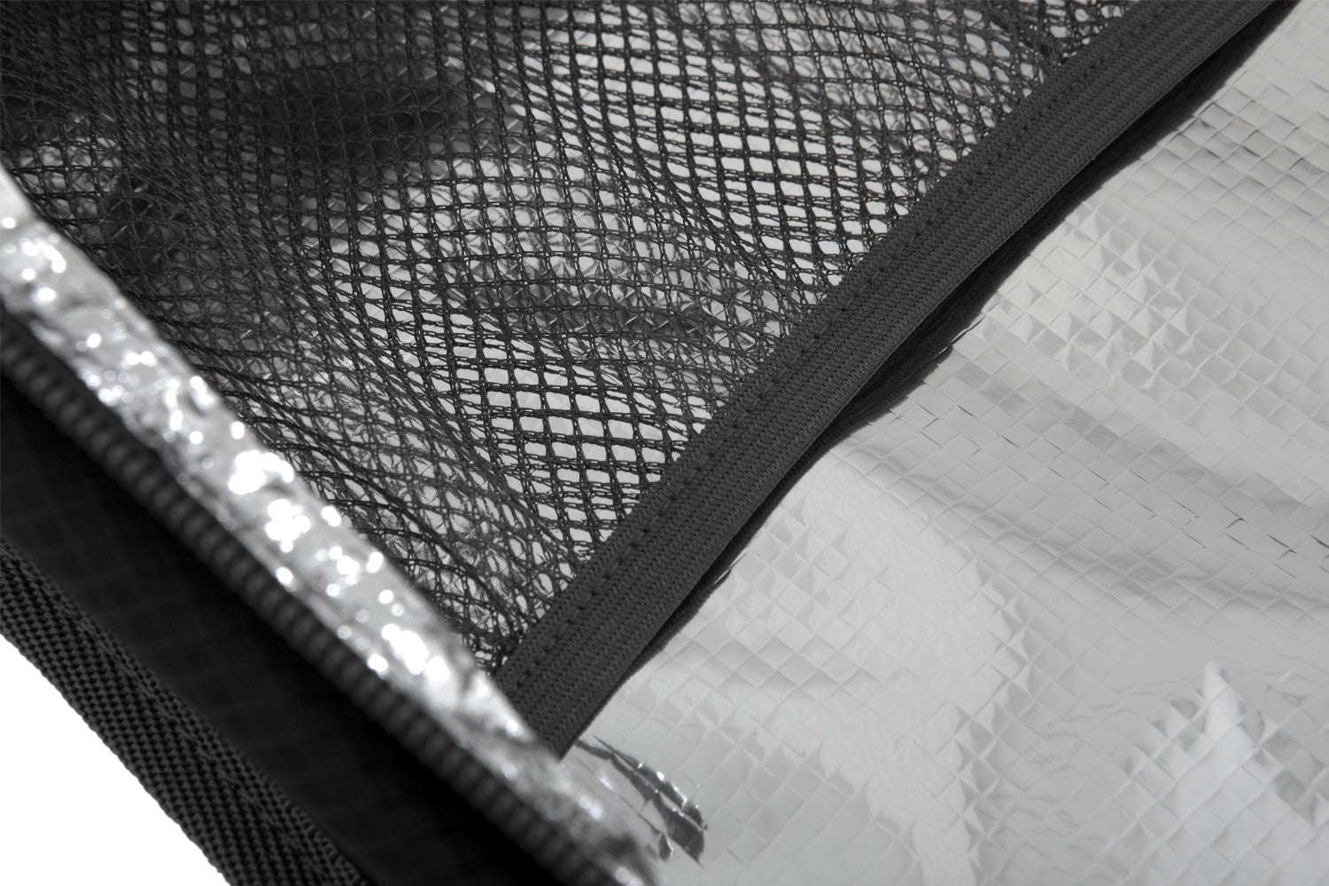 The backpack is especially light but still robust. This is down to the honeycomb fabric that pairs low weight with good tear resistance thanks to its honeycomb structure and looks fantastic at the same time. The backpack is also tailored close to the body and ergonomically, the shoulder and hip supports extend out to a comfortable width while being cushioned and fitted with adjustable straps. This also means it sits brilliantly over your motorcycle jacket.