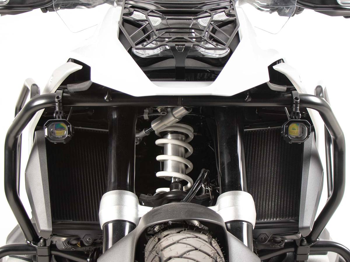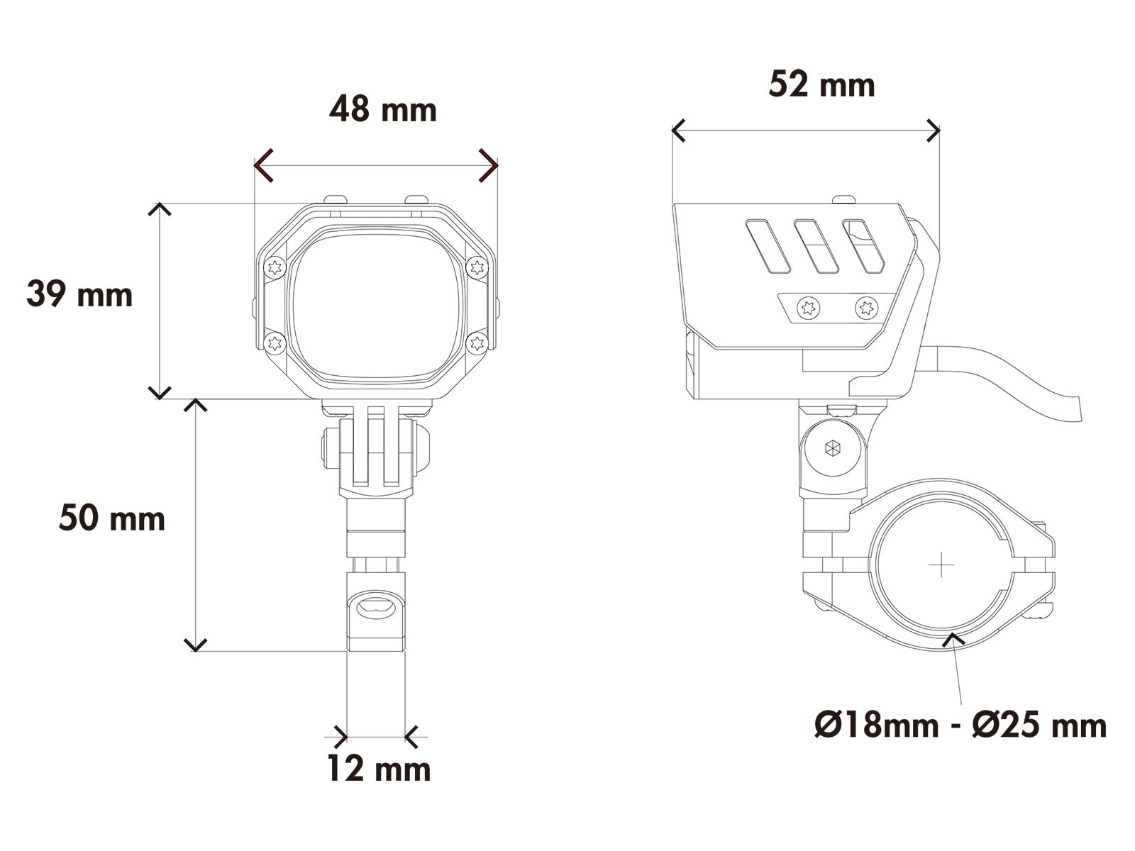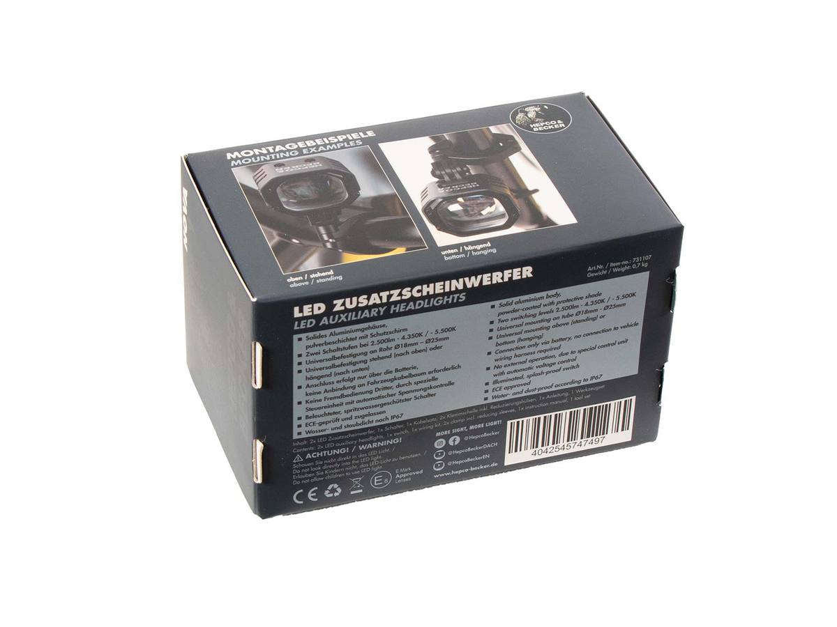 - Complete light set; Incl. 2x LED additional lights, 1x switch, 1x cable set, 2x clamp incl. reducing sleeves, 1x instructions, 1x tool set